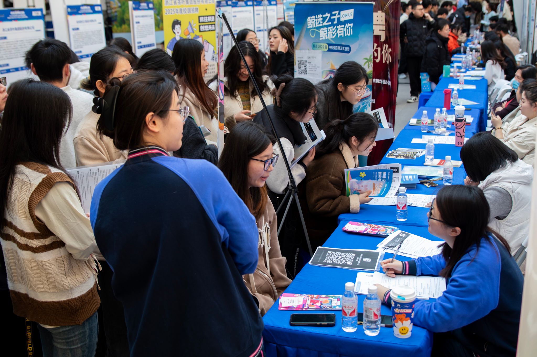 招聘會現場名企云集,浙江交工集團、新和成股份、千年舟新材、胡慶余堂等知名企業攜優質崗位亮相,必勝客、肯德基等連鎖品牌與上海種業集團、浙江省一建等農業建筑領域企業形成矩陣,崗位覆蓋技術研發、生產管理、市場營銷、教育服務等多領域。據統計,超千名畢業生懷揣精心準備的簡歷穿梭于展位間,與企業HR展開深度對話。