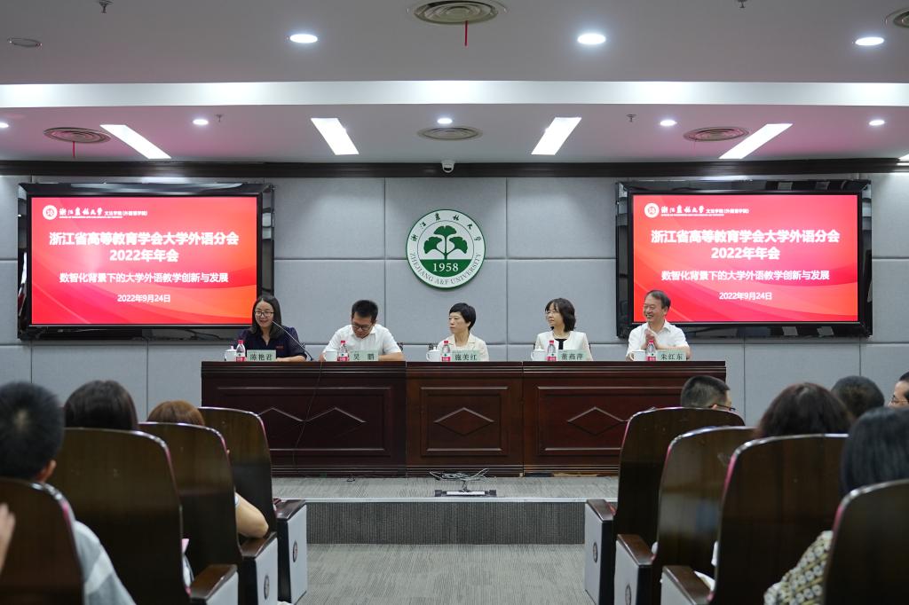 9月24日,浙江省高等教育學(xué)會(huì)大學(xué)外語(yǔ)分會(huì)2022年年會(huì)在我校舉辦。本次活動(dòng)由浙江省高等教育學(xué)會(huì)大學(xué)外語(yǔ)分會(huì)主辦,我校文法學(xué)院(外國(guó)語(yǔ)學(xué)院)承辦。我校黨委副書記施美紅出席了開(kāi)幕式。