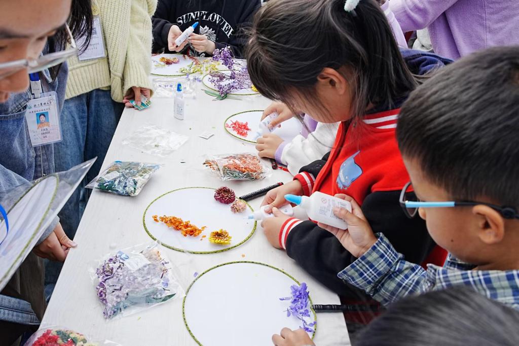 菊花展中還舉辦了各種才藝表演,同學(xué)們參與了一系列主題活動,包括“保護(hù)環(huán)境、從我做起”生態(tài)環(huán)保知識問答,“定格生態(tài)”壓花團(tuán)扇制作,“記錄美好事物,留下秋日時刻”葉脈書簽,“融合生態(tài),微觀自然”微景觀生態(tài)瓶+流浪瓶制作,“與枯葉對話,與自然交心”枯花葉拼貼繪畫,“花香四溢,聞香識花”嗅覺探花等,現(xiàn)場一片熱鬧的景象。