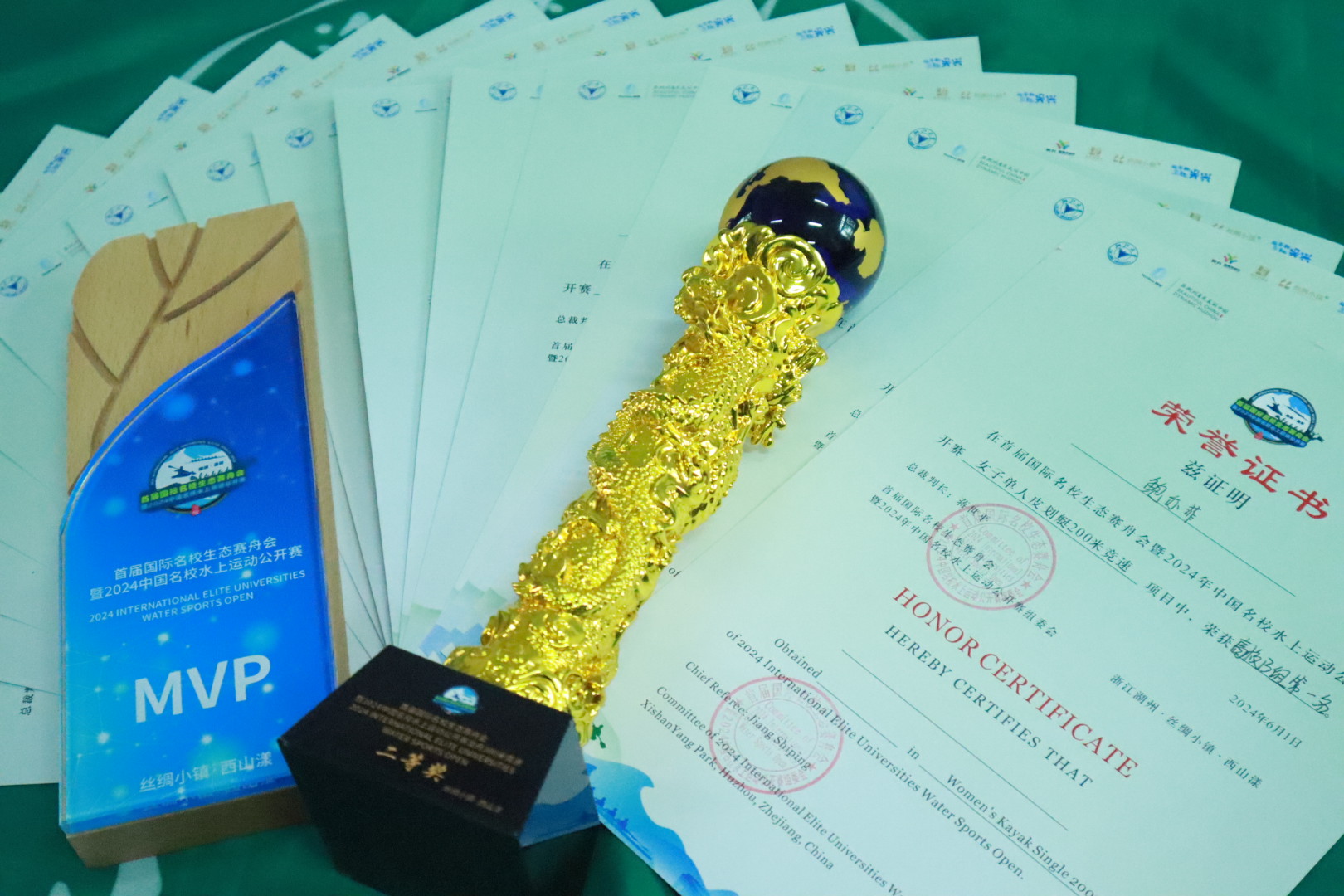 在本次比賽中,我校在12人龍舟200米直道競速賽高校B組中榮獲二等獎;200米單人皮艇比賽高校B組中,來自林學223班的鮑亦菲率先沖線,獲得女子組冠軍,來自應化221班的陸洋以0.71秒的微弱差距獲得男子組亞軍;在200米混合雙人皮艇比賽高校B組中,來自環工223班的王琳和林學234班的程儀真獲得了季軍;鮑亦菲在本次比賽中憑借優異的表現榮獲Most Valuable Player(MVP)。