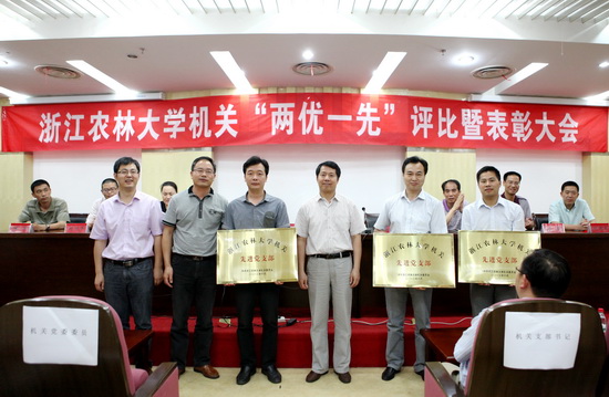 浙農林大新聞網訊 6月14日下午,學校機關“兩優一先”評比暨表彰大會在東湖校區圖書館第二報告廳舉行。校黨委副書記方偉為榮獲機關“兩優一先”的先進集體和個人頒獎,并為機關全體黨員上了一堂題為《加強機關黨的建設,服務學校中心工作》的黨課。