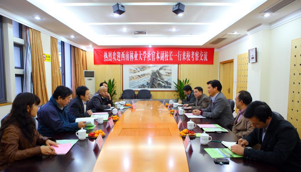 浙農林大新聞網訊 11月30日下午,西南林業大學副校長杜官本與中國林科院相關領導和專家一行5人來??疾旖涣?。我校副校長鮑濱福接待了來賓,并與客人們進行了座談。鮑濱福對杜官本一行的到來表示熱烈歡迎,并介紹了學校的建設和發展情況。會上,雙方就科研工作和學科建設等相關情況進行了深入的探討交流。