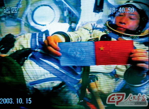 2003年10月15日9時整,搭載了中國首位航天員楊利偉的神舟五號載人飛船發射升空。10月16日,飛船安全返回,中國首次載人航天飛行取得圓滿成功,中華民族的千年飛天夢想得以實現。中國成為繼美國和俄羅斯之后第三個掌握載人航天技術的國家。