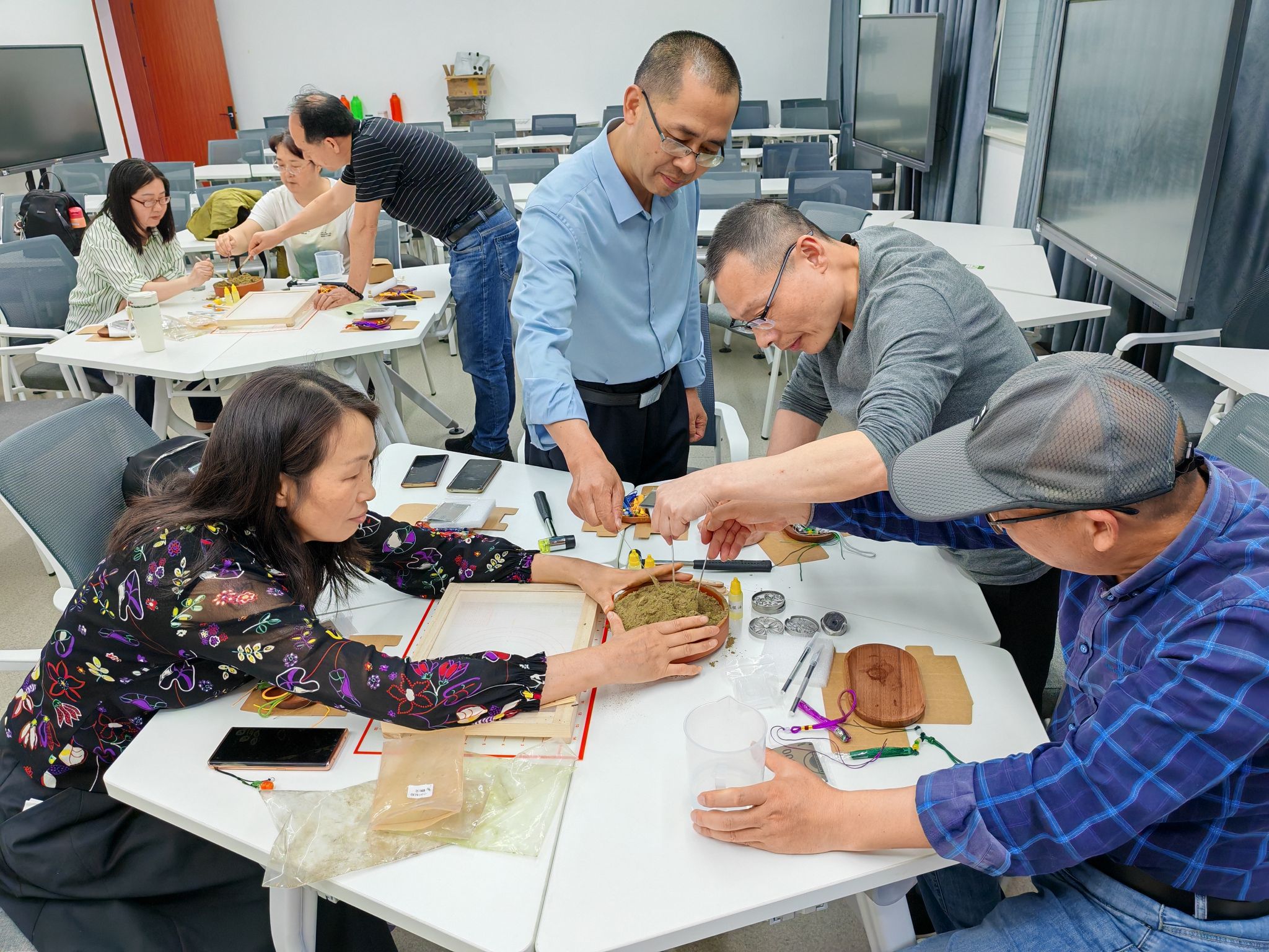 課堂實操中,在食品與健康學院徐建偉博士和張愛蓮副教授的專業指導下,學員們化身“小小藥師”,親手制作具有驅蚊、安神等功能的中藥功能香囊,并參與中藥植物精油提取實驗。研磨藥材、調配香料、萃取精華……每一個步驟都讓教師們感受到了中醫藥文化的獨特魅力,也為今后開展實踐教學積累了寶貴經驗。