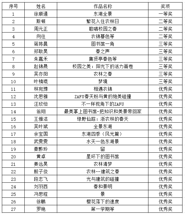 關(guān)于浙江農(nóng)林大學(xué)“美在農(nóng)林?校園之春”攝影作品征集活動獲獎名單的公示