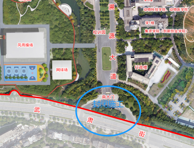 因學校暑期工程施工安排,對東湖校區南大門實施封閉施工,現將有關事項公告如下: