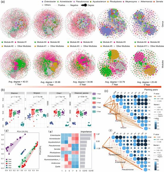 Effects ofC. oleiferaplantation ages on soil microbiome structures and diversities.