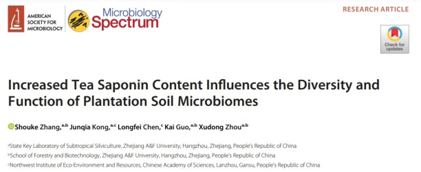 近日,國家重點實驗室森林健康研究團隊(周旭東教授課題組)在國際知名學術期刊Microbiology Spectrum(IF=7.171)發表了題為“Increased Tea Saponin Content Influences the Diversity and Function of Plantation Soil Microbiomes”的研究論文。該研究系統地探究了不同年限油茶種植園土壤茶皂素積累量、土壤理化性質以及土壤微生物群落結構與功能的關系問題,為提出合理的油茶種植園管理措施、綠色健康可持續的油茶栽培技術體系提供了數據支撐和理論基礎。