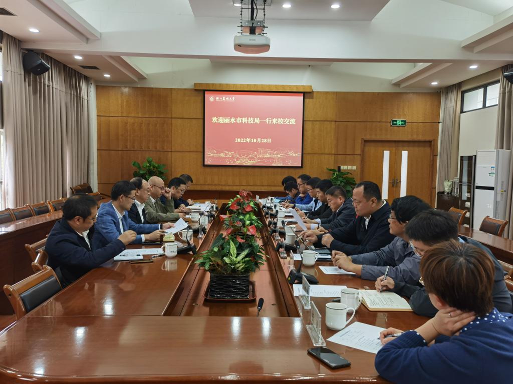 10月28日上午,麗水市科技局局長翁偉榮一行來校交流,社會合作處處長劉興泉,麗水市科技特派員及竹產業相關專家參加座談會。