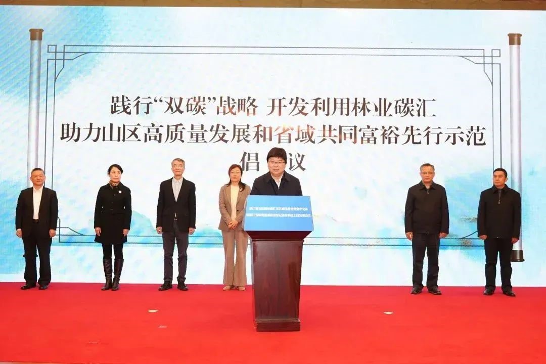 12月1日,由省林業局、省生態環境廳、省發展改革委共同舉辦的浙江省首批浙林碳匯項目減排量開發交易暨浙江省碳普惠減排量登記備案系統上線發布會在杭州召開。會議以“線下+線上”的形式舉行。省發展改革委副主任吳紅梅,省生態環境廳副廳長、一級巡視員王以淼,省林業局黨組書記、局長胡俠,省林業局一級巡視員楊幼平,省機關事務局副局長倪艷紅,省法院副院長朱新力,省檢察院檢察委員會委員、二級高級檢察官何成林,浙江銀保監局一級巡視員張有榮出席會議。周國模教授領銜的林業碳匯與計量科技創新團隊參加會議。