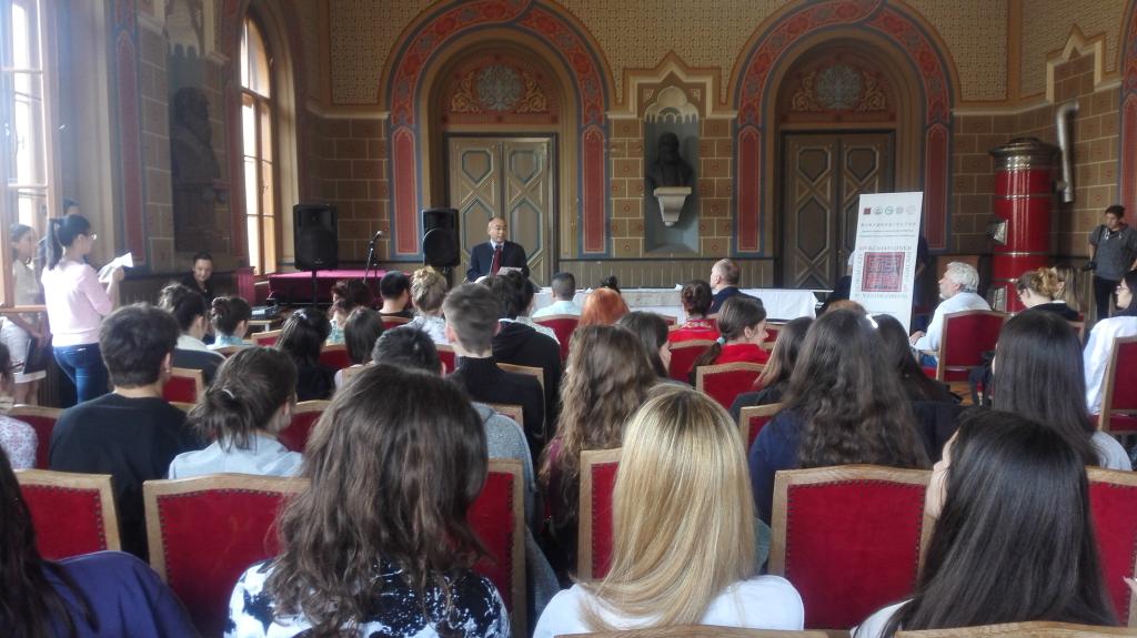 當地時間5月24日,塞爾維亞諾維薩德大學孔子學院下設卡爾洛夫茲語言高中孔子課堂(Karlovci Grammar School)舉辦“一帶一路·墨茗舞韻”中國文化推廣活動。語言高中新任校長拉多瓦·科瓦徹維奇(Radovan Kovacevic)、諾大孔子學院新任中方院長陳晦、受邀來進行交流的中國書畫家以及該校近100名師生參加了活動。