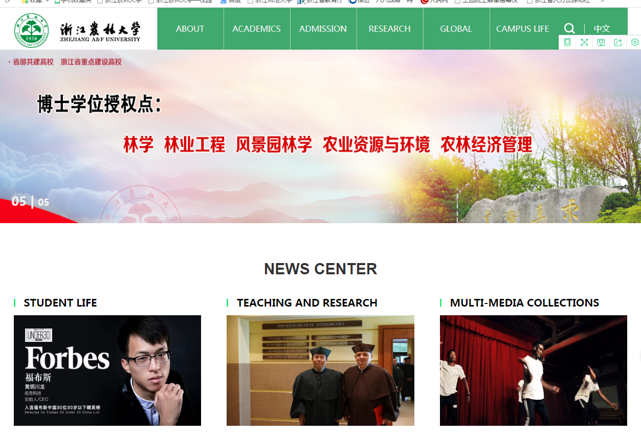 在學校60周年華誕之際,浙江農林大學英文門戶網站(http://en.zafu.edu.cn)改版完成,正式上線運行。