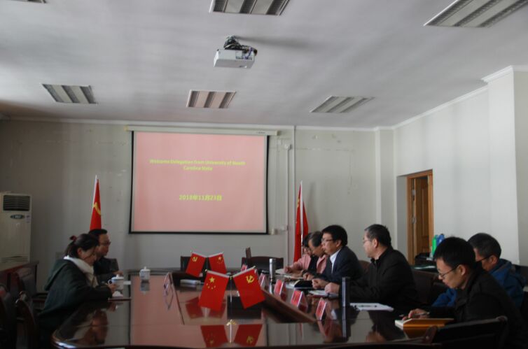 11月23日,為了加快學院國際化教育進程,加強與北卡羅萊納州立大學合作。美國北卡羅萊納州立大學PangTao教授應邀來訪理學院并舉行洽談。學院相關負責人、學科專業負責人參加會談。