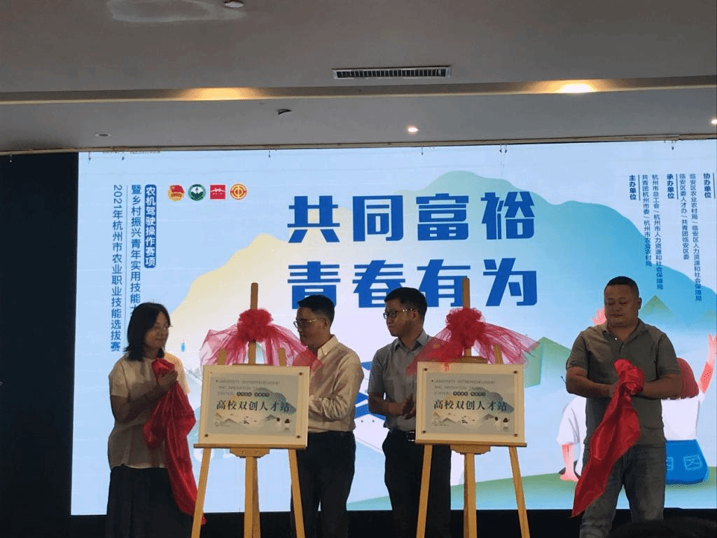 近日,由共青團(tuán)杭州市委、杭州市農(nóng)業(yè)農(nóng)村局、杭州市人力資源和社會(huì)保障局、杭州市總工會(huì)聯(lián)合主辦,臨安區(qū)委人才辦、共青團(tuán)臨安區(qū)委、臨安區(qū)農(nóng)業(yè)農(nóng)村局、臨安區(qū)人力資源和社會(huì)保障局聯(lián)合承辦的“共同富裕,青春有為”2021年杭州市農(nóng)業(yè)職業(yè)技能(農(nóng)機(jī)駕駛操作)大賽暨鄉(xiāng)村振興青年實(shí)用技能大賽(鄉(xiāng)村青年人才薈)活動(dòng)在臨安隆重舉行。光機(jī)電工程學(xué)院農(nóng)業(yè)工程/機(jī)械工程學(xué)科教工黨支部相關(guān)教師代表參加了本次鄉(xiāng)村賦能揭牌儀式,與清涼峰鎮(zhèn)九都村黨支部結(jié)對(duì)共建高校雙創(chuàng)人才站。